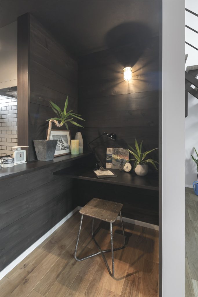 対面型キッチン前にワークスペースがある為、家事をしながら、お子様のお勉強を見守れます。