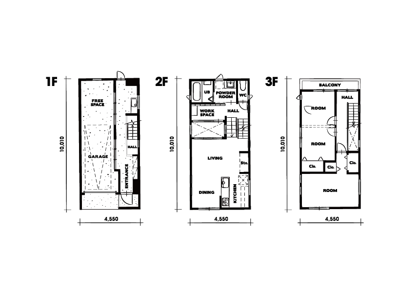 限られた敷地でも建てられるコンパクトな3階建てのプラン。都市部でも郊外でもその場の環境にマッチしながら存在感のあるデザインに。